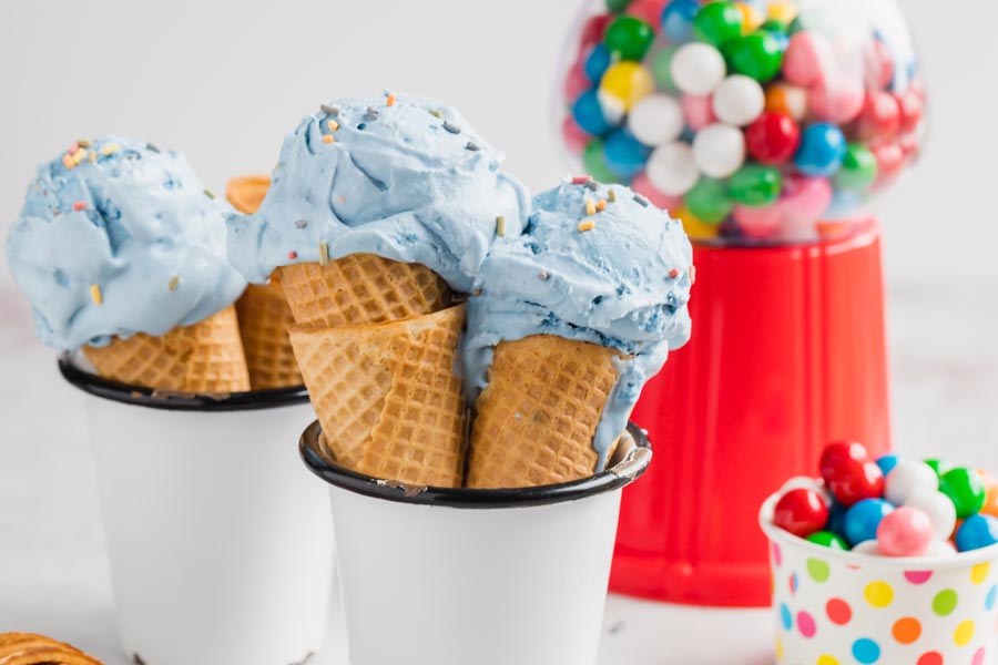 Get ready for a fun, creamy, scoopable dessert that will bring out the inner child in any adult. This bubble gum ice cream recipe is egg-free and sugar-free making it a perfect keto dessert. To make keto bubble gum ice cream, you need zero-sugar bubblegum flavor extract to flavor the ice cream and butterfly blue pea powder to give it that iconic blue color.