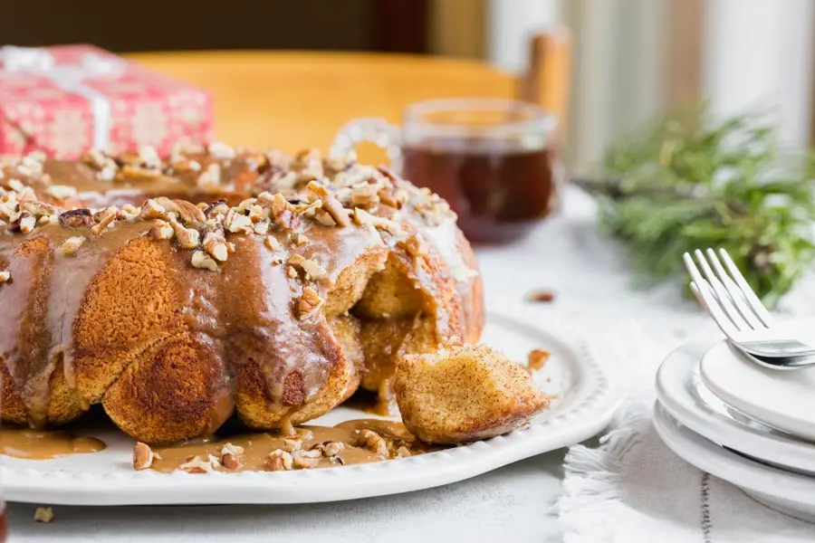This gluten-free monkey bread is a sugar-free recipe that uses keto sweeteners instead of sugar to get a tasty sweet and sticky dessert. This pull-apart bread is made with a combination of almond flour and protein powder instead of traditional all-purpose flour for a keto, gluten-free bread. Each bread bubble is coated in a sweet cinnamon mixture and drizzled with a brown butter caramel sauce for the ultimate holiday dessert.