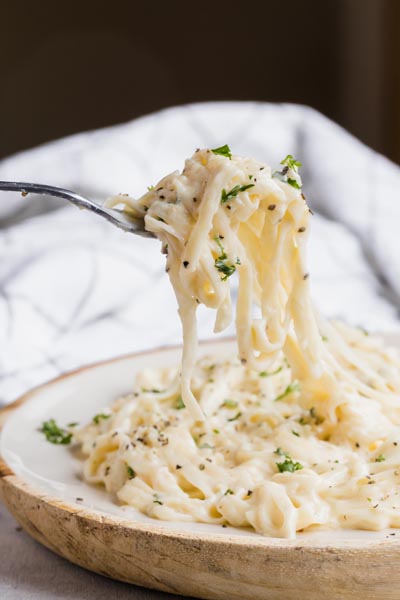 - Heavy whipping cream – If you use a lighter dairy like half and half or milk, your sauce won’t have the same creaminess. Heavy whipping cream is the perfect thickness for a luxurious alfredo. And substituting with a nut milk (almond milk or coconut milk) won’t get your sauce thick and creamy.