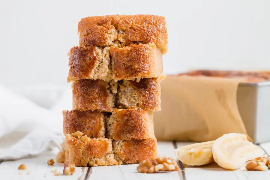 - Protein powder – This ingredient helps to form a protein matrix to trap air bubbles to keep our banana nut bread spongy and fluffy.