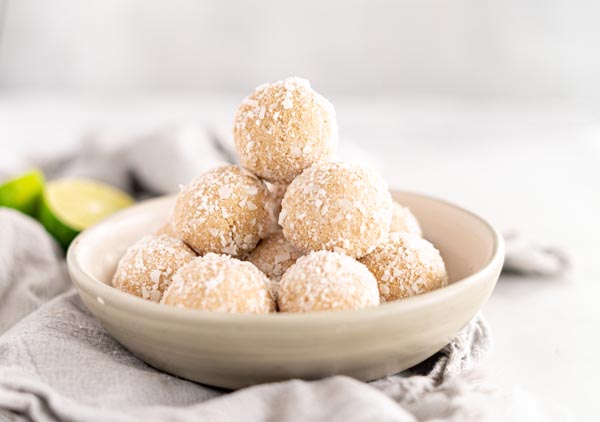 Roll the dough into the shredded coconut until completely covered. Store the coconut limes balls in an air-tight container in the fridge.