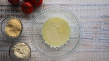 Place 1 1/2 cups mozzarella cheese in a microwave safe bowl. Microwave at 60 second intervals, stirring in between, until melted. You can also melt cheese in a non-stick skillet over medium heat on the stove top.