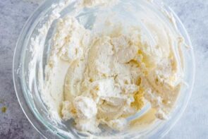 Mix by hand, carefully folding the whipped cream into the cream cheese mixer in order to keep the fluffiness and airiness of the cheesecake balls. -