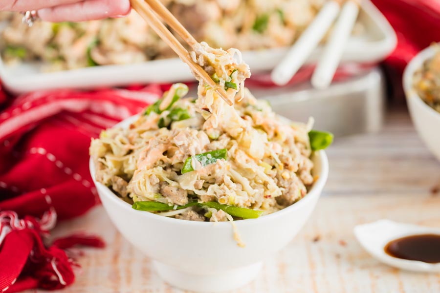 This is the BEST keto egg roll in a bowl recipe as the flavor combinations are on point! Topped with sriracha mayo, this easy keto dinner is the ideal protein packed meal that can be made in no time! It’s like an egg roll but without the wrapper!