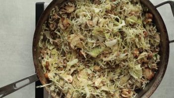 Add in mushrooms, coleslaw or cabbage, liquid aminos, white vinegar, sesame oil and monkfruit sweetener. Cook for 2-3 minutes or until mushrooms have softened slightly.