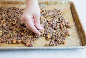 - Spread onto a baking sheet and bake at a low temperature (250 degrees Fahrenheit) for 45 minutes.