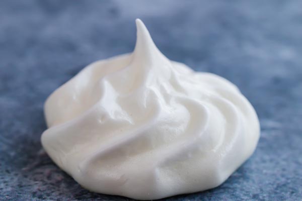 - Add in powdered sugar free sweetener and beat the meringue until stiff peaks form.