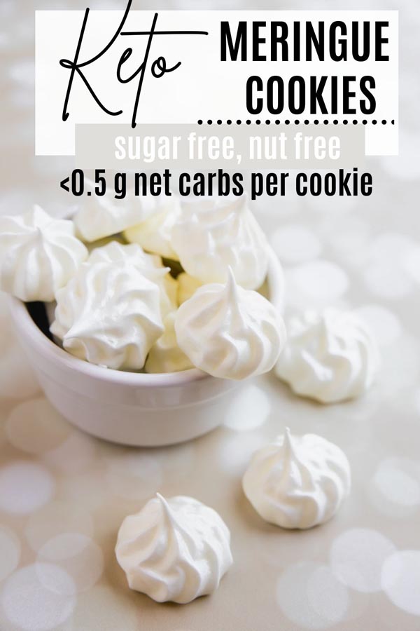 Classic meringue cookies made sugar-free and with only 3 ingredients! These bite sized cookies are like sinking your teeth into clouds that dissolve. They are the perfect addition for a bake sale or cookie exchange, along with my keto shortbread cookies and low-carb chocolate chip cookies, if you are looking for a sugar free option.