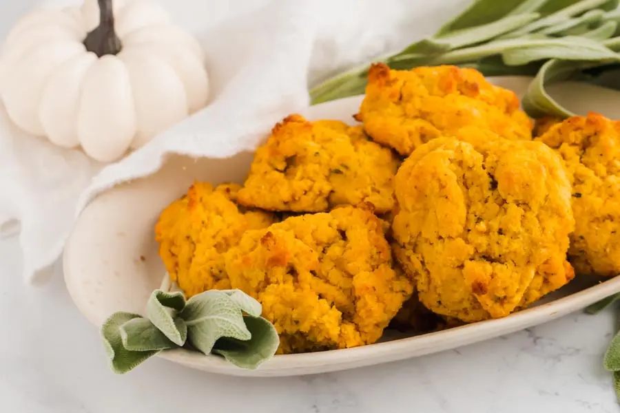 Keto pumpkin biscuits make the perfect bread to your warm hearty soup or creamy fettucine alfredo for the Autumn and Winter seasons. These low carb drop biscuits are easy to make and a great way to use up any extra canned pumpkin puree you might have hanging around.