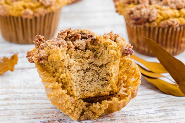 Keto pumpkin pecan muffins are full of seasonal Fall flavors and topped with a buttery streusel topping.