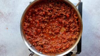 The longer you let this sauce simmer, the better it becomes. If you choose to let it simmer longer, you may need to add a little bit of water if the sauce evaporates too much to prevent burning. -