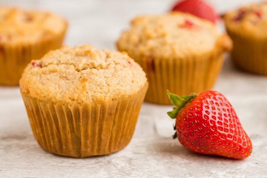 Fluffy keto strawberry muffins are a quick grab and go breakfast or snack. Slightly sweet and filled with fresh strawberries, these muffins are a filling make ahead low-carb meal.