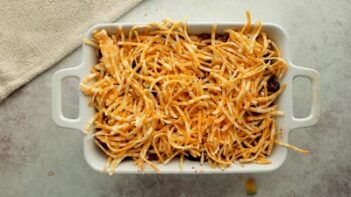 While I like to transfer the filling from the skillet to a casserole dish to drain out excess liquid, you can absolutely bake everything in an oven-safe skillet to avoid extra dishes and make clean-up even easier with making a one pot wonder like this skillet casserole.