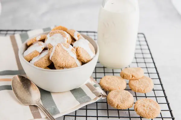 If you like to have milk with your cookies, try them together! Pour yourself a bowl of cereal with mini keto snickerdoodle cookies and your favorite keto milk. These little cookies are gluten-free, sugar-free and have a hint of tangy cinnamon flavor.