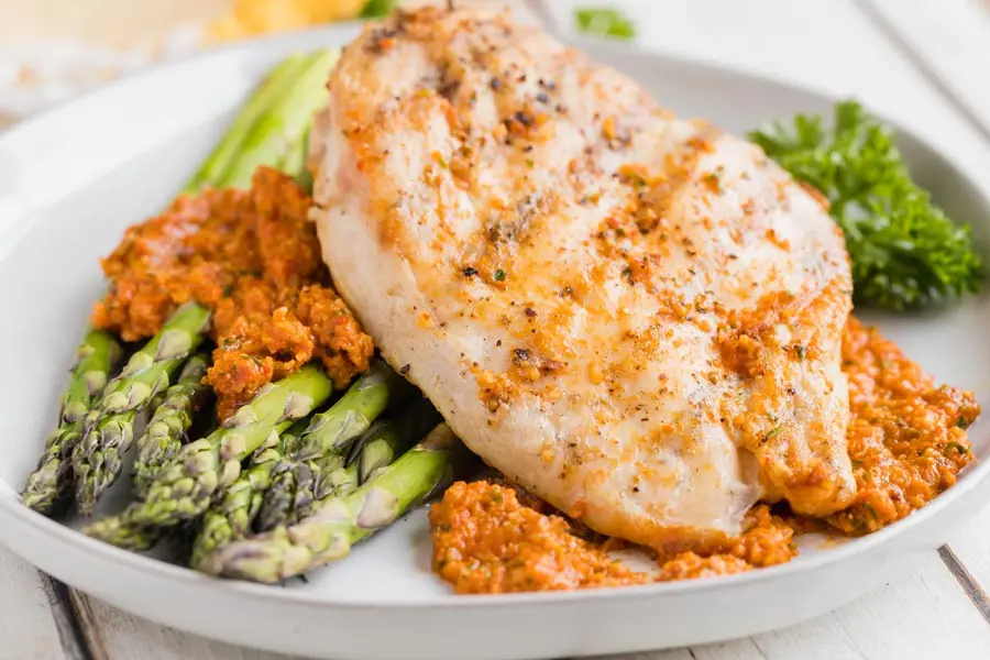 Romesco chicken is a quick and easy weeknight meal that will impress any dinner guests. This Spanish-inspired keto romesco sauce is made with red peppers, tomatoes, and toasted almonds. Let this flavor-packed sauce take your dish of roasted chicken and veggies to the next level!