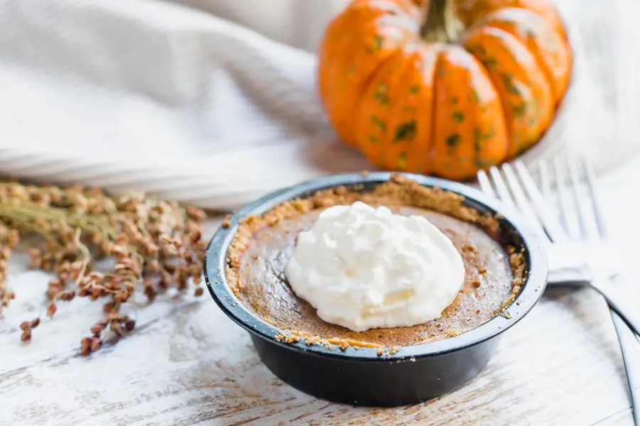 Avoid temptations at holiday dinners by making yourself this pumpkin pie for one! This single-serve dessert is a delight to dig in and enjoy the holiday flavors.