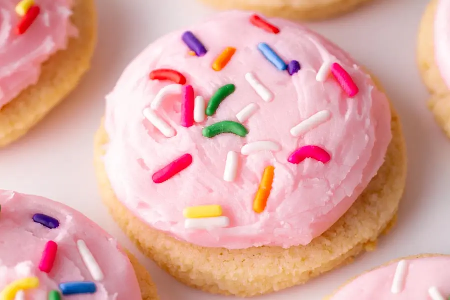 - Lofthouse copycat – The buttercream frosting is tinted a playful shade of pink, reminiscent of the popular soft, melt-in-your-mouth Lofthouse cookies.