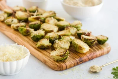 Crispy air fryer brussels spouts are the perfect bite sized side dish to accompany most keto dinners.
