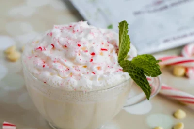 An easy keto peppermint flavored white hot chocolate that you can enjoy this holiday season or when the weather is chilly.