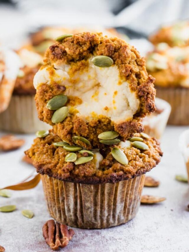 Missing those pumpkin muffins with cream cheese filling from Starbucks? Make a low carb version with these copycat Starbucks Keto Pumpkin Cream Cheese Muffins! A brown butter pumpkin muffin surrounds a creamy cream cheese filling for you to enjoy at breakfast or on-the-go!